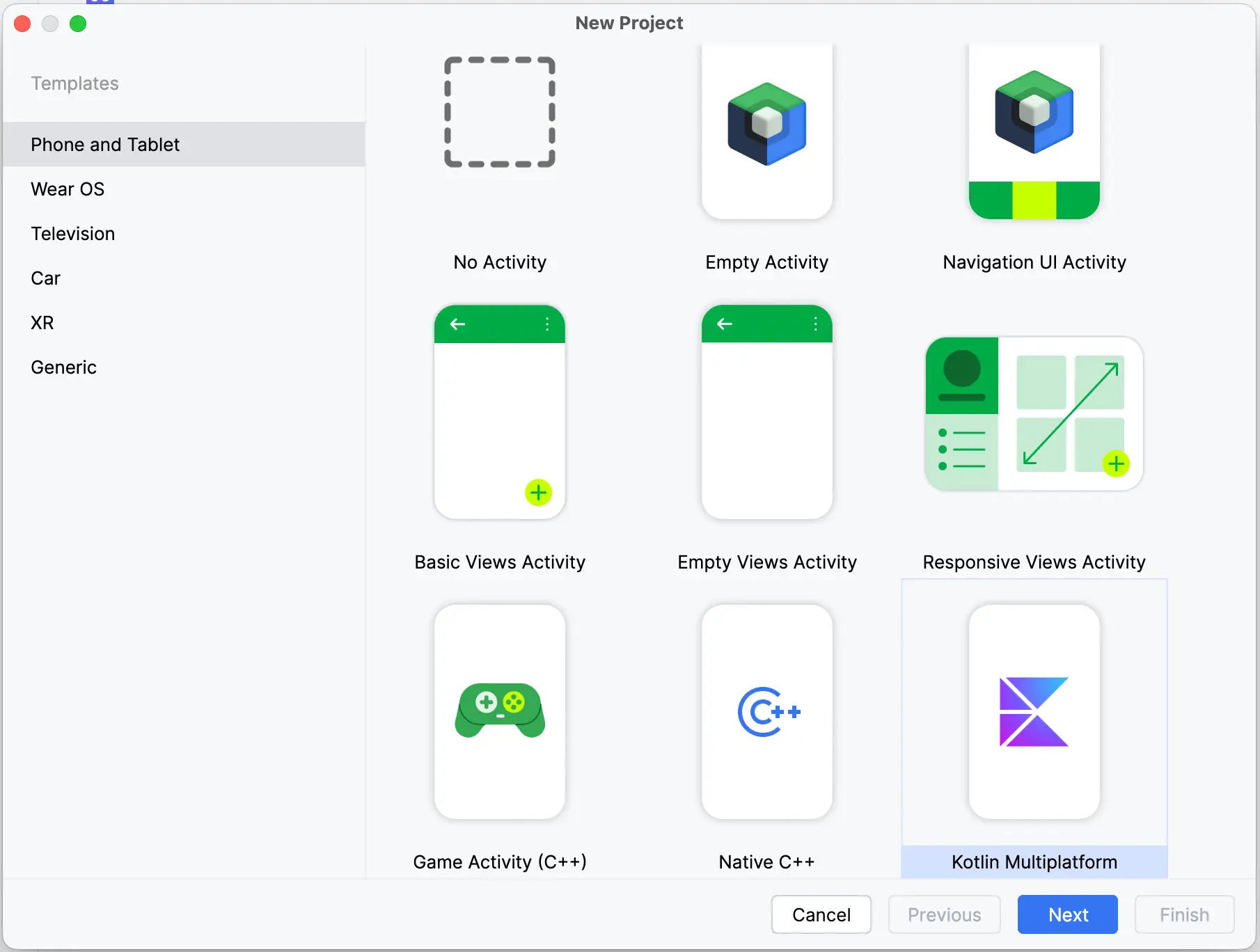 - Select Kotlin Multiplatform → Next