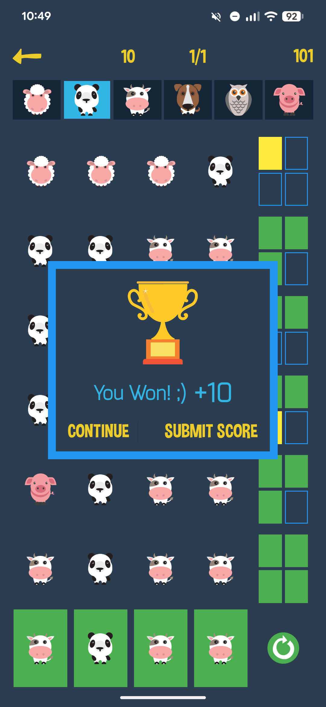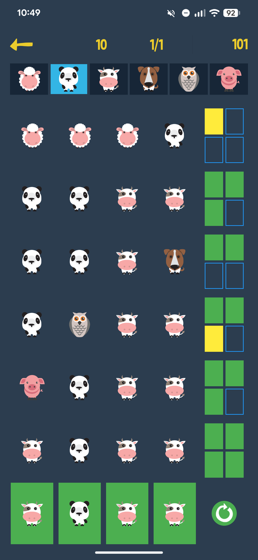 - You can pick animals from the top row and also from the rows already filled with animals during play.